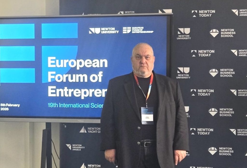 Ректорът на Висше транспортно училище „Тодор Каблешков“ проф. д-р инж. Красимир Кръстанов и проф. д-р Васко Василев от катедра „Икомоника и счетоводство в транспорта“ взеха участие в 19-та Международна научна конференция „Европейски форум по предприемачество 2026“, която се проведе на 5 февруари 2026 г. в Университет Нютън, гр. Прага, Чехия. Посещението бе по покана на доц. д-р инж. Емил Велинов, преподавател и директор на магистърска програма в Университет Нютън.