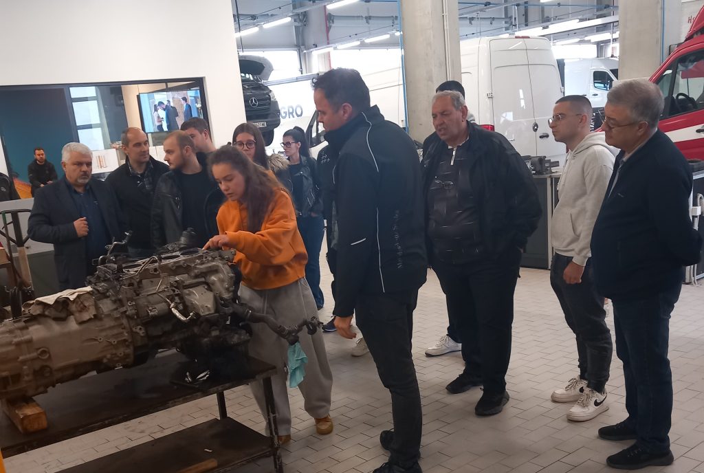 Групата ни бе запозната подробно с особеностите на провеждане на годишен технически преглед, сервизната дейност, технологични решения и новостите в различни области (техническа безопасност и екология, конструкция на автомобила, ремонт и експлоатация на автомобила, изпитване и диагностика на автомобила, теория и конструкция на автомобилна техника, автомобилна техника, автомобилни спирачни уредби, двигатели с вътрешно горене и др.). Студентите и докторантите задаваха много въпроси, свързани със спецификата на работа във фирмата, като особен интерес предизвика представянето на иновациите, с които 140 години Mercedes-Benz оформя бъдещето на мобилността още от изобретяването на автомобила през 1886 година. Беше представена и последната придобивка – TwoTronic Quick Check Scanner, скенер за цифрово откриване на състоянието и оценка на превозното средство.