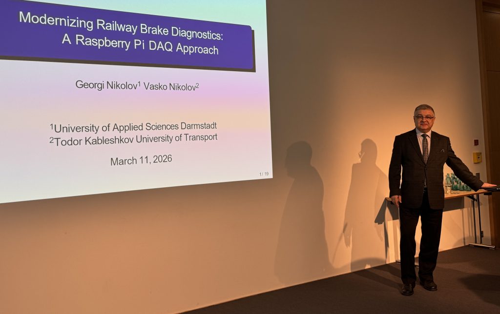 Висше транспортно училище „Тодор Каблешков бе представено от доц. д-р инж. Васко Николов, ръководител на катедра „Транспортна техника“, който участва в конференцията с публикация на тема: „Модернизиране на диагностиката на железопътните спирачки: подход с Raspberry Pi.“, в съавторство с проф. д-р Георги Николов от Университета по приложни науки в Дармщат, Германия.