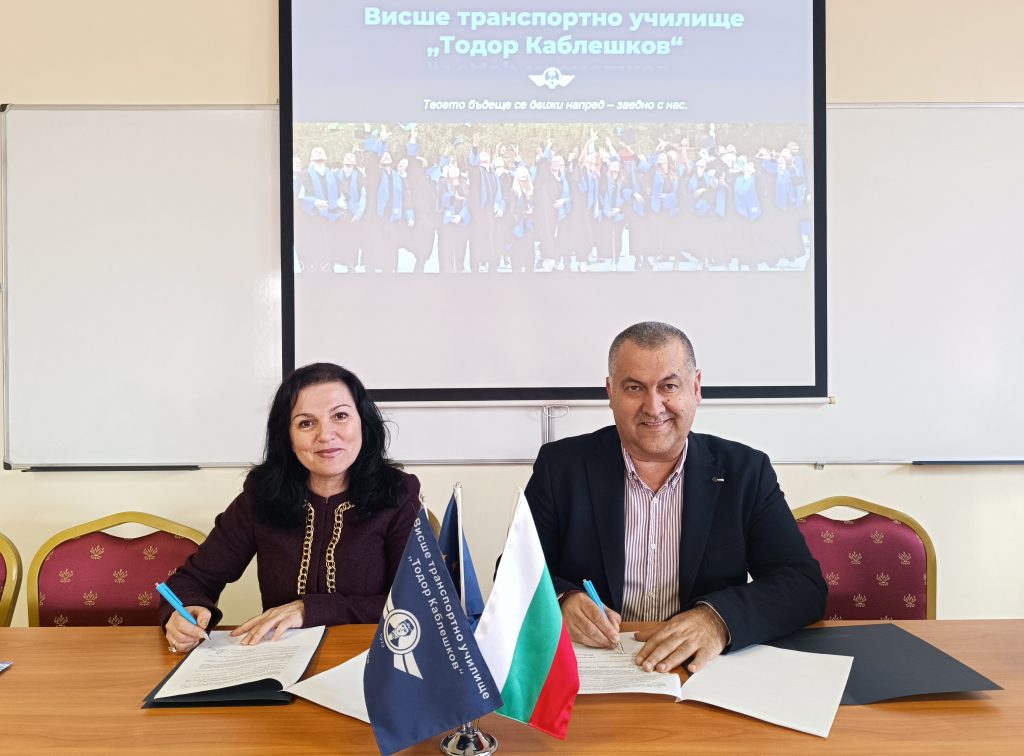 На 28.01.2026 г. ректорът на Висшето транспортно училище „Тодор Каблешков“ проф. д-р инж. Красимир Кръстанов подписа Договор за сътрудничество с директора на Професионална гимназия по транспорт „Коста Петров“, с. Борован инж. Десислава Тодорова. Това стана в рамките на организираното посещение във ВТУ на ученици от XI и XII клас на професионалната гимназия, които ни гостуваха с цел провеждане на практическо обучение. Те получиха подробна информация за възможностите за продължаване на обучението им във ВТУ „Тодор Каблешков“ и имаха възможност да се запознаят с материалната ни база.