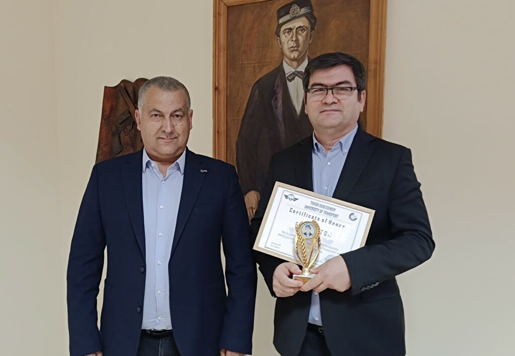 Г-н Недим Хафузов получи и лична благодарствена грамота за приноса му в установяване на сътрудничеството между „Фибробетон“ АД и Висшето транспортно училище „Тодор Каблешков“ и за помощта му при организирането и провеждането на днешния информационния семинар.