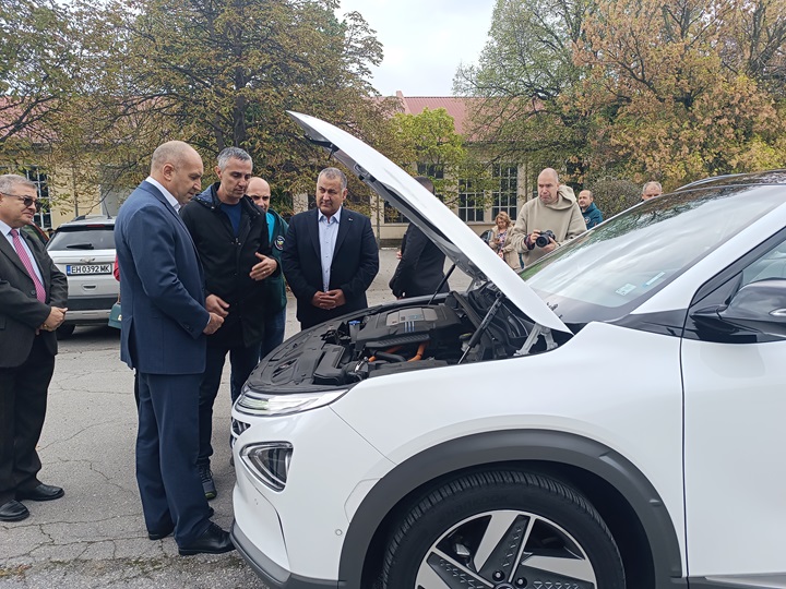 Преди да приключи своето посещение, г-н Радев се запозна с техническите характеристики и направи тестова обиколка с първия официално регистриран в България водороден автомобил, собственост на Центъра за компетентност „Хитмобил“ към Института по електрохимия и енергийни системи на БАН.