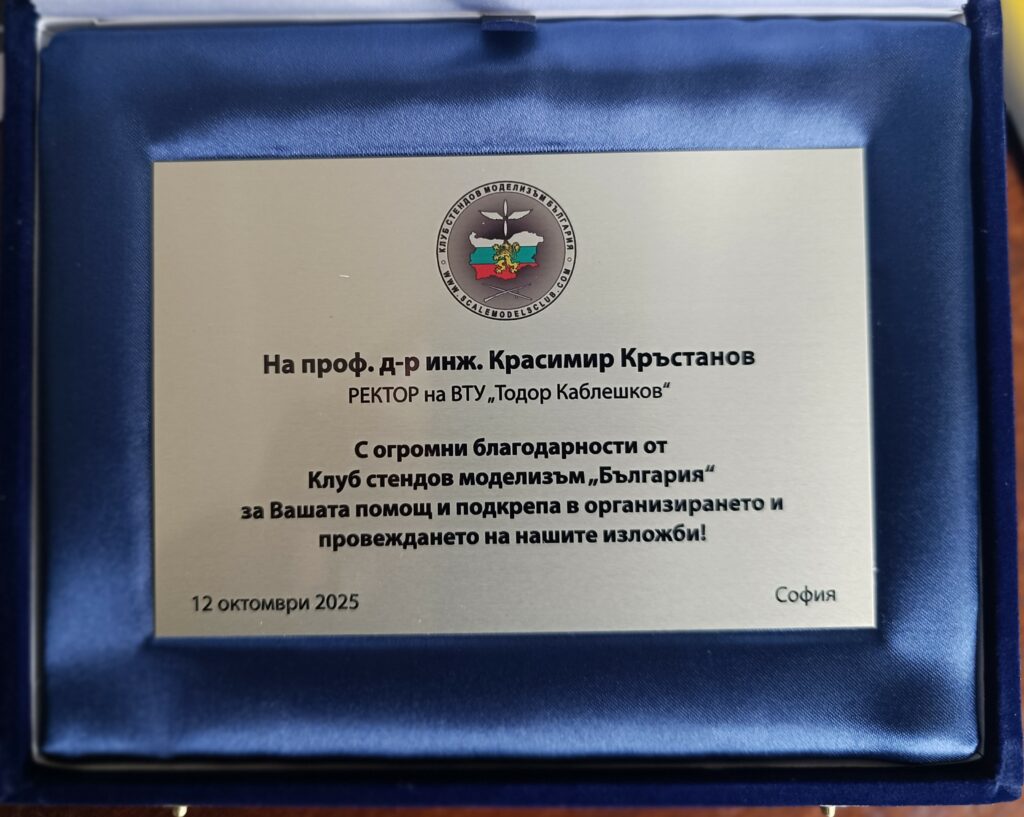 На 11 октомври 2025г. Президентът Румен Радев посети Висшето транспортно училище „Тодор Каблешков“ по повод XIX Международна изложба-конкурс по стендов моделизъм, провеждаща се този уикенд в зала „Юбилейна“ на ВТУ. Ректорът проф. д-р инж. Красимир Кръстанов и г-н Станислав Петков председател на клуба „Стендов моделизъм – България“ посрещнаха височайшия гост и му благодариха за интереса към това вълнуващо събитие.