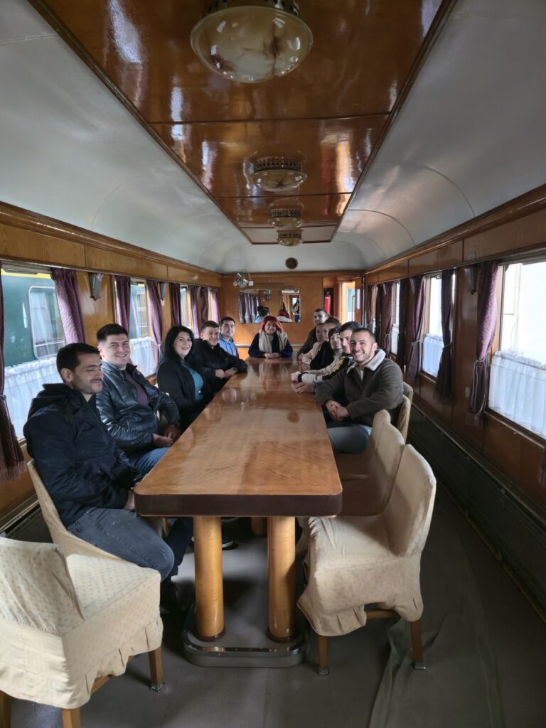 Посещението включваше оглед и запознаване с вагони от композицията на ,,Витоша Експрес“ и „Корона Експрес“, като се осъществи под ръководството на доц. д-р инж. Юлия Варадинова, заместник-ректор по учебната дейност и ас. инж. Петър Костадинов от катедра ,,Технология, организация и управление на транспорта“.