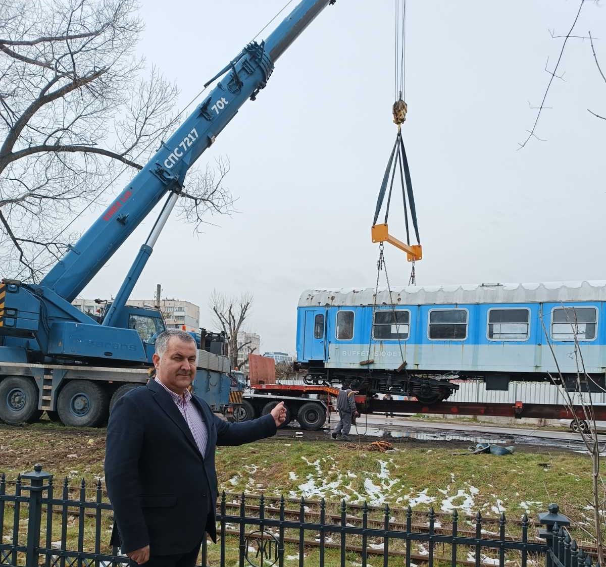 Монтиране на вагон в двора на Висше транспортно училище – бъдеща „Библиотека на колела“ 23 февруари 2026